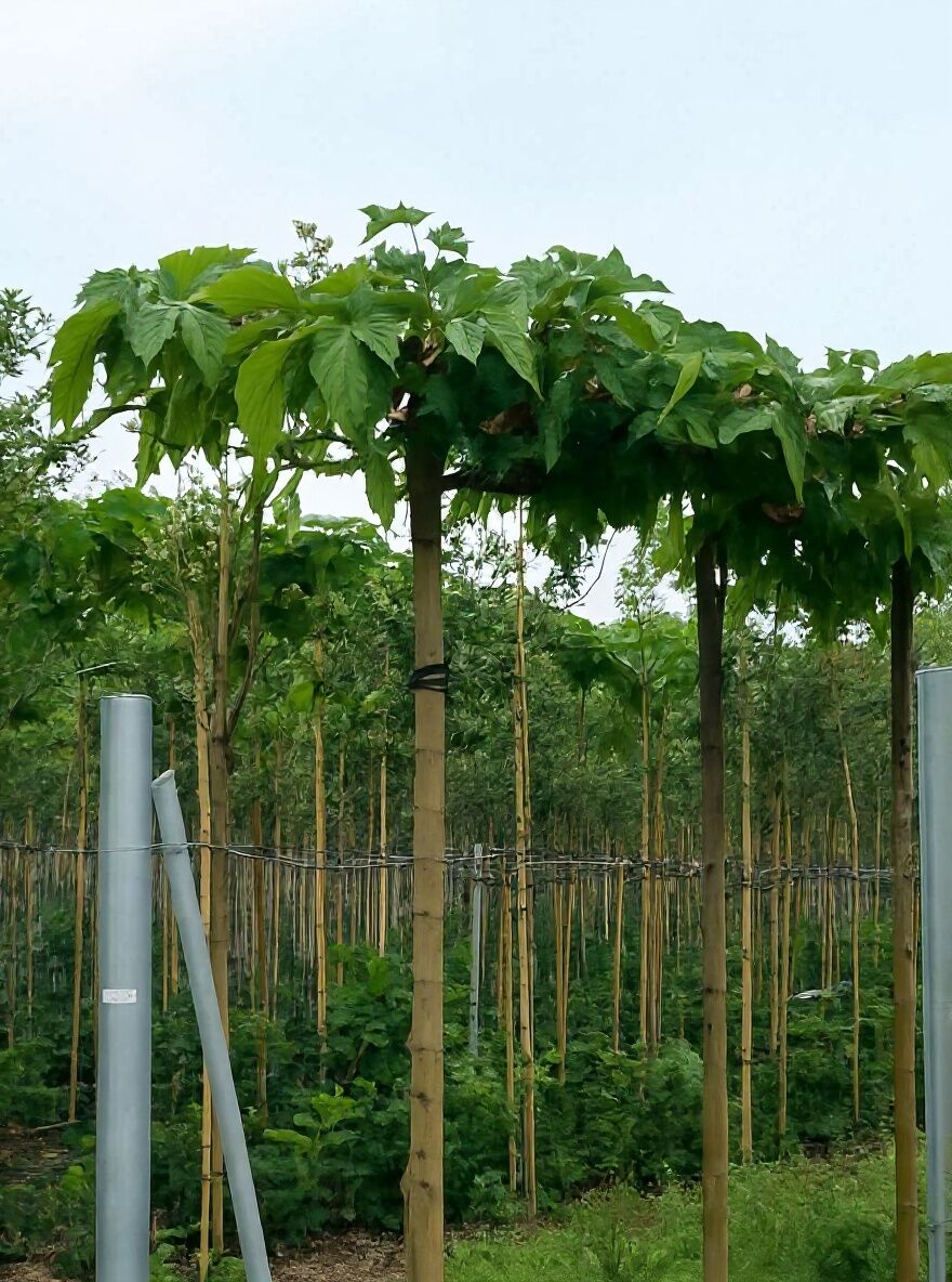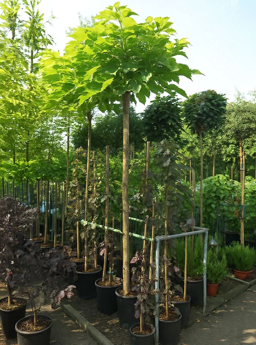Ein außergewöhnlicher Baum mit beeindruckend großen Blättern – ein echter Blickfang im Garten und ideal für natürlichen Schatten.