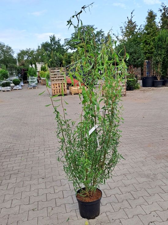 Detaillierte Beschreibung: | Herkunft und Besonderheiten der Salix babylonica ’Tortuosa‘ / KorkenzieherweideDiese französische Weidenart ist vielen Hobbygärtnern unter ihrem deutschen Namen Korkenzieherweide oder auch Zickzack-Weide bekannt und gilt als sehr beliebt. Sie verschönert viele Hausgärten mit einer skurrile Wuchsform ihrer Äste und setzt aparte Akzente: Korkenzieherartig gedrehte Zweigen lassen diese Weide zu einem echten Hingucker werden, der gerade im tristen Winter wirkungsvoll zur Geltung kommt. Originelle Aststruktur versprüht malerischen CharmeDie Salix babylonica ’Tortuosa‘ ist in Fachkreisen ebenfalls unter dem botanischen Namen Salix matsudana ’Tortuosa‘ bekannt und wird im Baumschulhandel unter diesem Namen geführt. Das aparte Zierelement wird gerne in Wassernähe gepflanzt. Die markanten Zweige werden im Winter oder in der Osterzeit zur Dekoration in einer Vase aufgestellt und versprühen mit einer skurrilen Wuchsform einen unvergleichlichen Charme. Die Trauer-Weide stammt trotz ihres Namens nicht aus BabylonDie Ausgangsart Salix babylonica gehört zur Familie der Weidengewächse (Saliceacea) und wächst trotz ihres botanischen Namens nicht im Nahen Osten, sondern in China, Japan und Ost-Turkestan. Ihren botanischen Namen erhielt die Salix babylonica von dem französischen Botaniker Carl von Linne, dieser benannte den Baum fälschlicherweise nach der von ihm vermutetnt Herkunft Babylon. Mittlerweile ist dies aber widerlegt. Die Trauerweide verschönert wassernahe StandorteDie sogenannte Korkenzieherweide ist sehr beliebt und hat viele Freunde unter den Gärtnern. Sie gilt als eine der schönsten Zierbäume und wird aufgrund ihrer guten Wasserverträglichkeit gerne an Flussufern, Bächen und Seen gepflanzt. Dort bezaubert sie mit ihrer romantischen Ausstrahlung und bringt Abwechslung in den Garten. Korkenzieherweide wird bis zu 10m hochDie Salix babylonica ’Tortuosa‘ bleibt mit einer Endhöhe von höchstens 10 Metern kleiner als viele andere Weidenarten. Sie eignet sich daher gut für die Verwendung im eigenen Garten. Zur Entfaltung ihrer wunderschönen Wuchslinie benötigt diese Weide einen Raum von bis zu 5 Metern, um sich ungestört entfalten zu können. Der kleine Baum oder auch Strauch verschönert sowohl die hauseigenen Gartenoase als auch gleichermaßen eine herrschaftliche Parkanlage. Bizarre Aststellung hinterlässt bleibenden EindruckBesonders auffällig erscheint die aparte Baumkrone der Salix babylonica ’Tortuosa‘. Diese wächst zunächst oval, ist aber dann zunehmend rundlicher. Die korkenzieherähnlichen, gedrehten Äste machen sie zu einem aparten Hingucker.... |