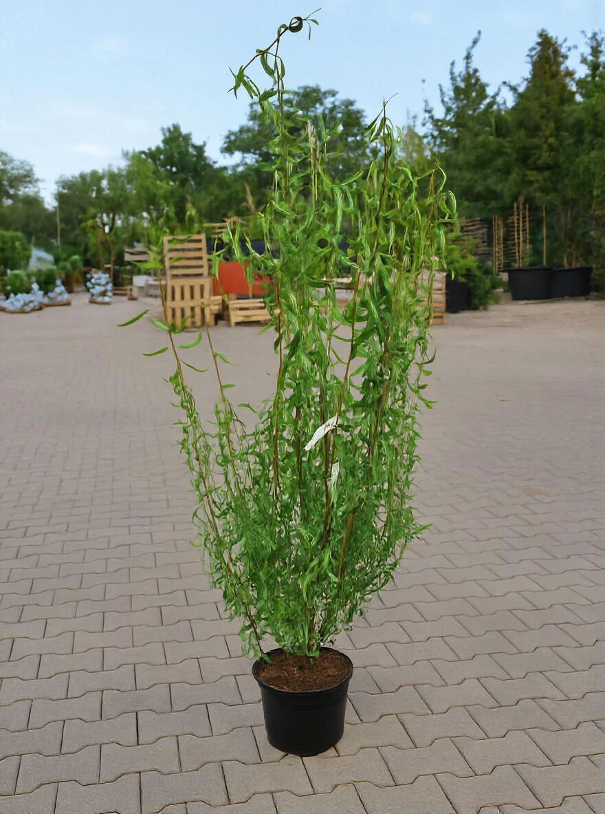 Salix matsudana 'Tortuosa' (Korkenzieher-Weide) 125–150 cm im Container C12, schlanke Pflanze mit gedrehten Trieben und schmalen Blättern