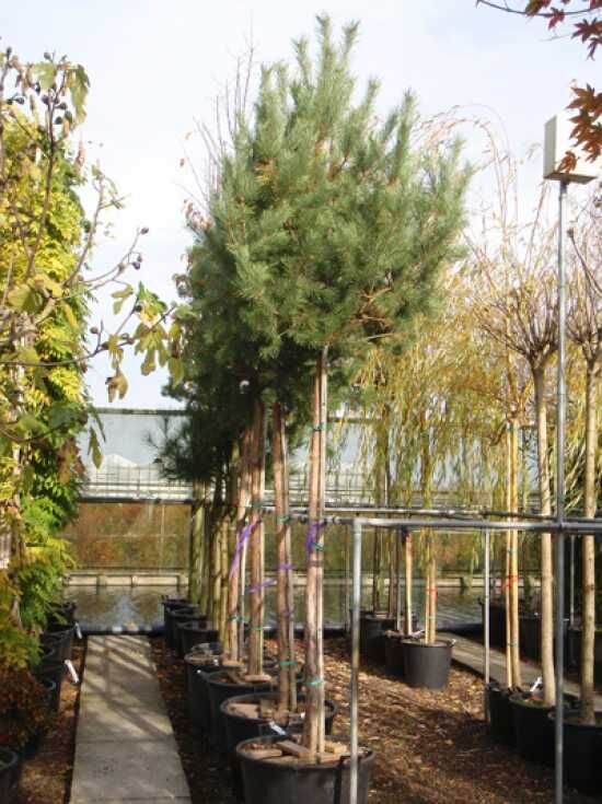 Wuchs: | Großer Baum, Stamm gerade und durchgehend, anfangs breit-kegelförmig Krone, später schirmförmig, 15-30 m hoch und 8-10 m breit.. |