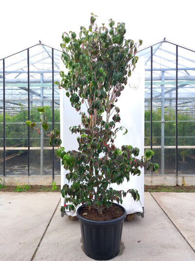 | Detaillierte Beschreibung: | Herkunft und Besonderheiten des Cornus florida ’Rubra‘ / Roten Blumen-HartriegelsDer Cornus florida ’Rubra‘ ist eine der populärsten Selektionen des sogenannten Blumen-Hartriegels und erfreut mit einer intensivroten Blüte, die einen wunderschönen Anblick liefert und idyllische Gartenmomente beschert. Er ist den meisten Laiengärtnern daher ebenfalls unter dem Synonym Roter-Blumen-Hartriegel bekannt. Man trifft ihn in vielen heimischen Gärten, wo er mit seiner Blüte und einem malerischen ausladenden Wuchs erfreut und ganzjährig Farbe in den Garten bringt. Dekorativer Zierstrauch ist weltweit sehr beliebtDie Ursprungsart Cornus florida wächst im Nordosten der USA und ist dort sehr verbreitet. Man trifft das Ziergehölz in freier Natur vor allem am Waldrand oder im Unterholz an Böschungen. Der attraktive Frühjahrsblüher mag luftfeuchte Standorte mit trockenem bis sandigen Boden und bezaubert dort mit seinem attraktiven Erscheinungsbild. Anspruchsvoller Strauch entlohnt die Mühe mit sensationeller OptikDer Blumen-Hartriegel gilt insgesamt als eher anspruchsvoll und stellt hohe Erwartungen an den Gärtner. Mit der richtigen Unterstützung und etwas Feingefühl wird er dann aber zu einer sehenswerten Schönheit und belebt den heimischen Garten mit seiner glamourösen Ausstrahlung. Langsame wachsende Pflanze mit charismatischer OptikDer Rote Blumen-Hartriegel gehört zur Gattung der Cornus und der großen Familie der Hartriegelgewächse. Wie alle Vertreter der Gattung verfügt er über ein weitreichendes Wurzelsystem, das stabilisierend wirkt und gerne genutzt wird, um Böden vor Erosion zu schützen. Entsprechend findet man ihn oftmals in Hanglagen und an Böschungen. Roter Blumen-Hartriegel wird 3 bis 6m hochNeben den optischen Vorzügen erfreut der Cornus florida ’Rubra‘ mit einem langsamen Wuchs und einem geringen Jahreszuwachs von etwa 10 Zentimetern. Er wird recht alt und präsentiert sich nach circa 10 Jahren mit einer Größe von bis zu 3 Metern, wobei er eine Endhöhe von bis zu 6 Meter erreichen kann. Mit einer imposanten Kronenbreite von bis zu 5 Metern benötigt er Platz. Er sollte daher am besten in solitärem Stand gepflanzt werden und entlohnt einen würdigen Standort mit einer formschönen Wuchslinie. Gartenschönheit mit romantischem CharmeDer Rote Blumen-Hartriegel wächst breit ausladend und ist dicht verzweigt. Seine Äste bilden eine rundliche Krone, die im Alter mit leicht durchhängenden Zweigen erfreut und einen malerischen Anblick liefert. Die imposante Krone verleiht dem Strauch einen romantischen Charme und macht ihn zu einer wunderschönen Gartenschönheit, die zu jeder Zeit im Jahr Freude bringt. Aparte Baumrinde wirkt besonders im WinterBereits im Winter zieht die aparte.... |