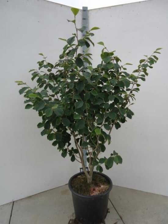 Wuchs: Mittelgroßer bis großer Strauch, straff aufrechter Wuchs, dichtbuschig und gedrungen, 3 bis 4 m hoch und ähnlich breit.