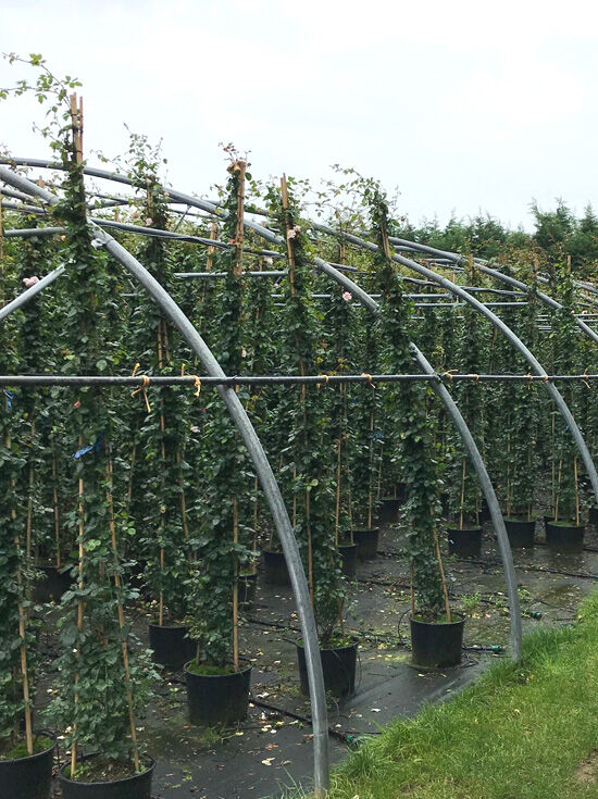 | Wuchs: | Kletterrose, dichtbuschig und kompakt, überhängend, bis zu 400 cm lang, starkwüchsig |