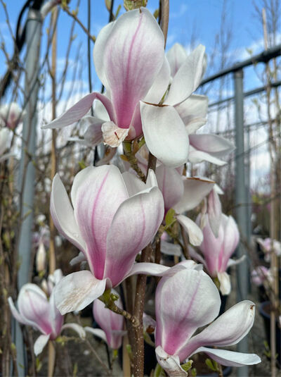 Magnolia soulangiana verbreitete sich schnell auch in anderen Teilen Europas und wurde bereits im Jahr 1827 in England eingeführt. Heute ist sie fester Bestandteil unseres Sortiments an Ziergehölzen und bietet eine riesige Auswahl an Züchtungen, die sich vor allem in der Blütenfarbe, der Blütenzeit und der Wuchshöhe unterscheiden.