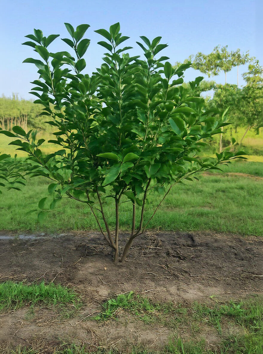 Kurzer Stamm trägt dezente braungraue Rinde