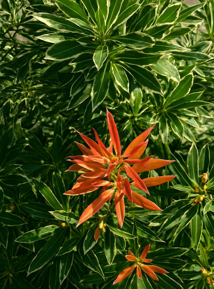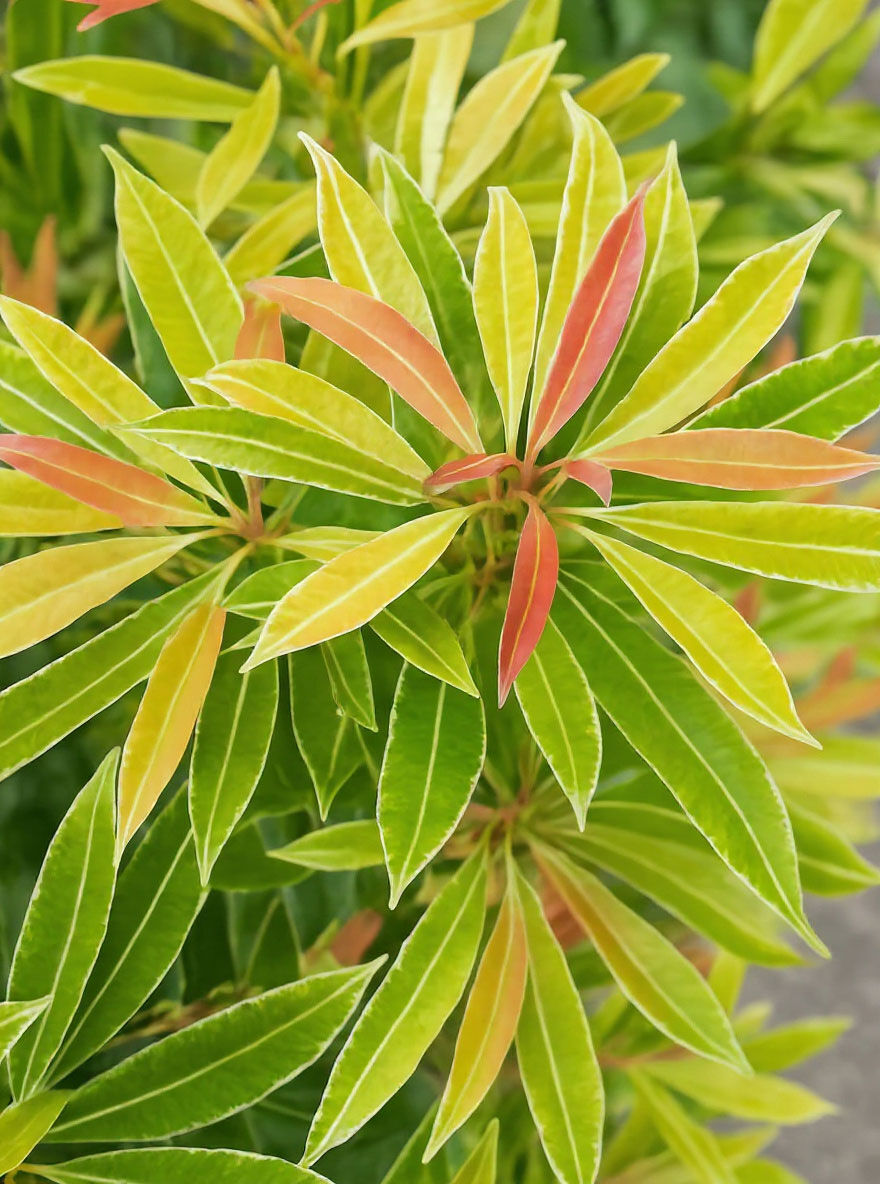 Name Botanisch: Pieris japonica 'Flaming Silver'.