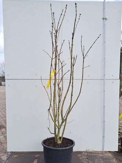 Wuchs: Großstrauch, aufrecht wachsend, dicht verzweigt, etwas steiftriebig, 4 bis 6 m hoch und 3 bis 5 m breit