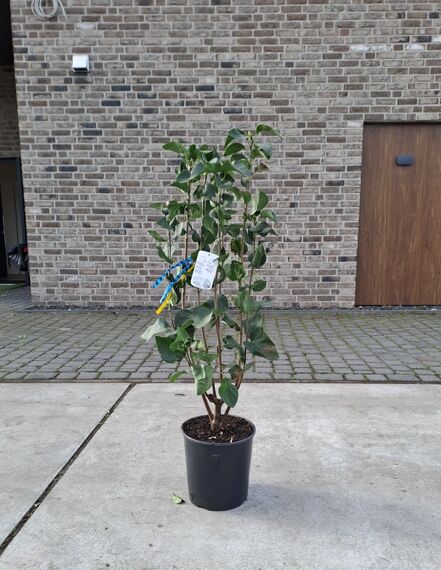 Wuchs: Großstrauch, aufrecht wachsend, dicht verzweigt, etwas steiftriebig, 4 bis 6 m hoch und 3 bis 5 m breit.
