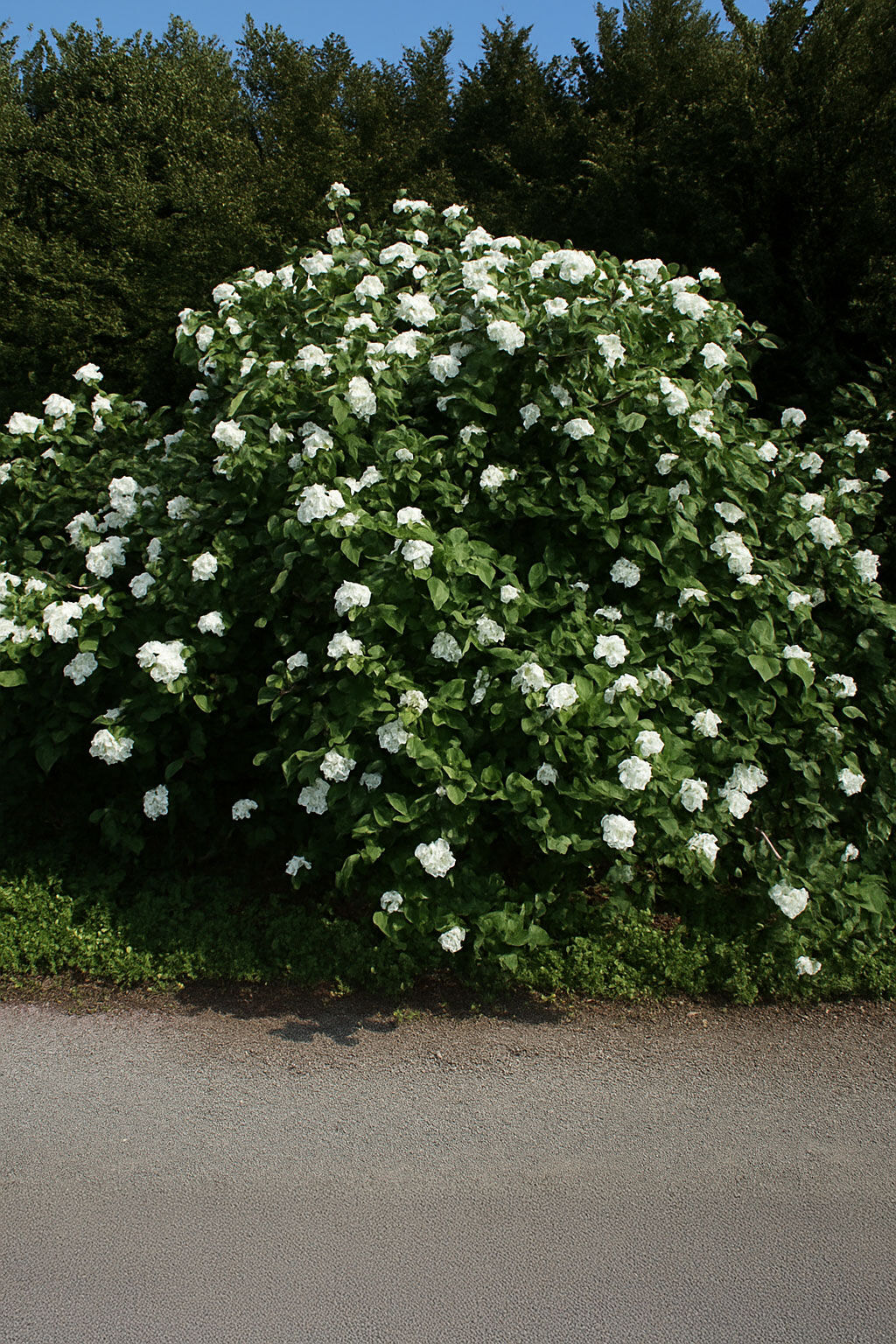 | Wuchs: | Kleiner Strauch, kompakt, breitbuschig bis kugelig, später schirmförmige Krone, 200 bis 250 cm hoch und ebenso breit |