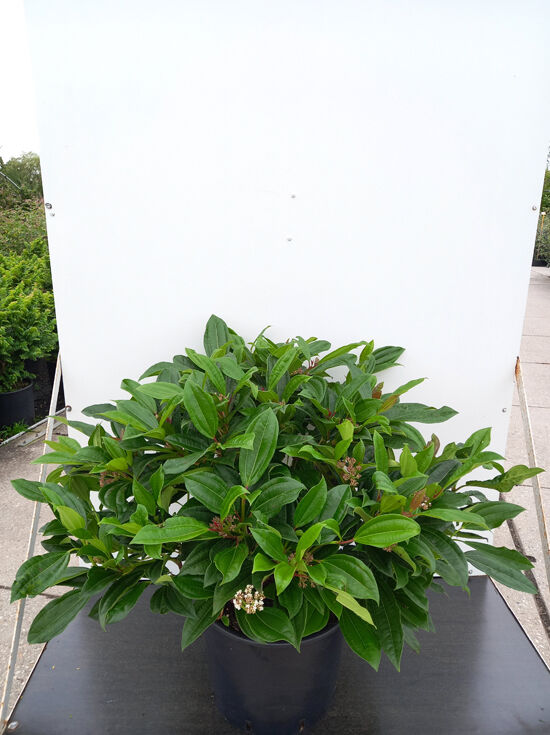 | Eigenschaften: | Der Viburnum davidii (Immergrüner Kissen-Schneeball) ist ein extrem ansprechender Bodendecker, der mit seinen attraktiven Blüten und interessanten Blättern zu überzeugen weiß. Um die Fruchtbildung zu gewährleisten, sollten mehrere Exemplare zusammengepflanzt werden.. |