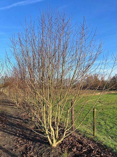 Wuchs: Großer Strauch oder kleiner bis mittelgroßer Baum, zunächst kegelförmig aufrecht, später breit-rundlich, im Alter ausladende Zweige, 10 bis 15 m hoch und 6 bis 8 m breit.