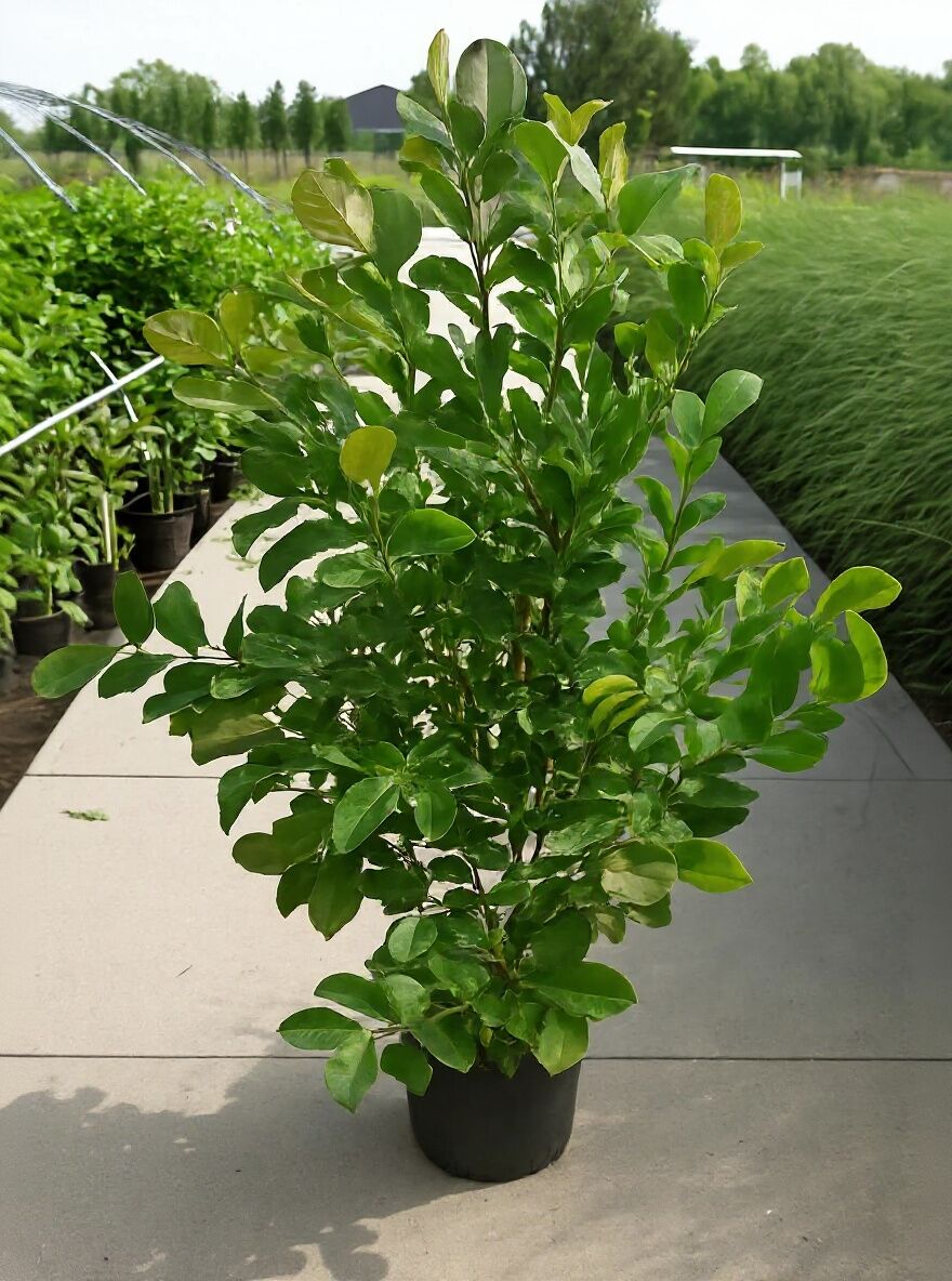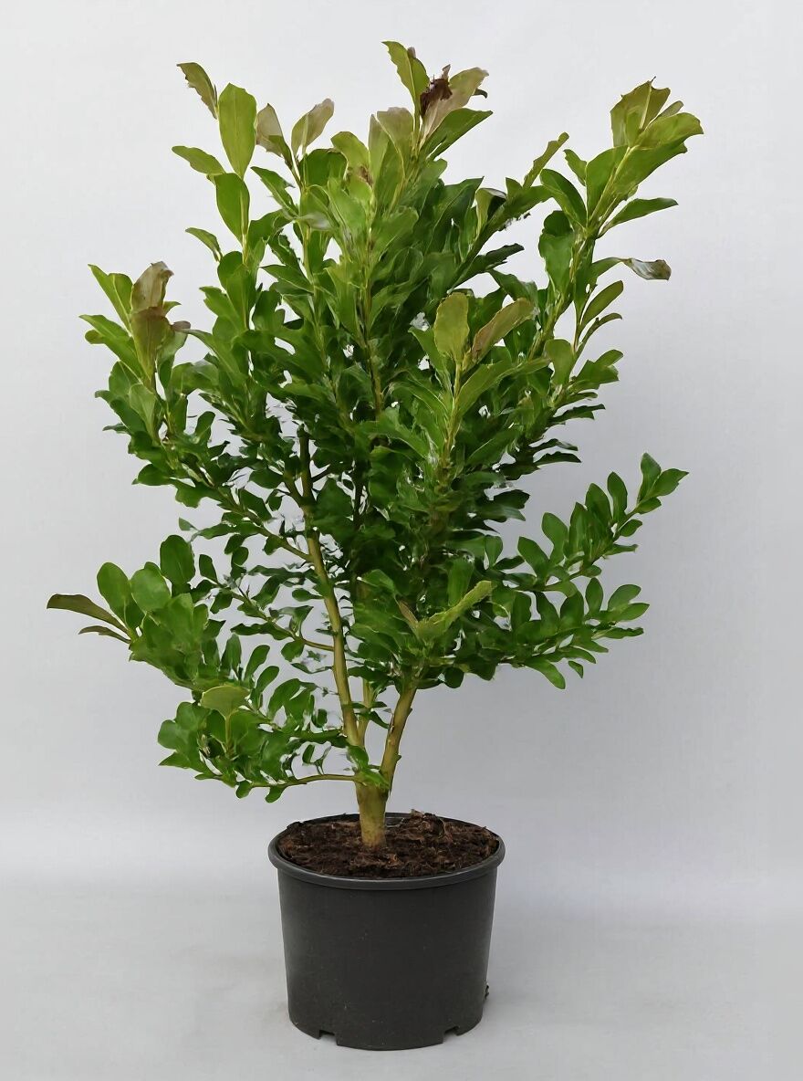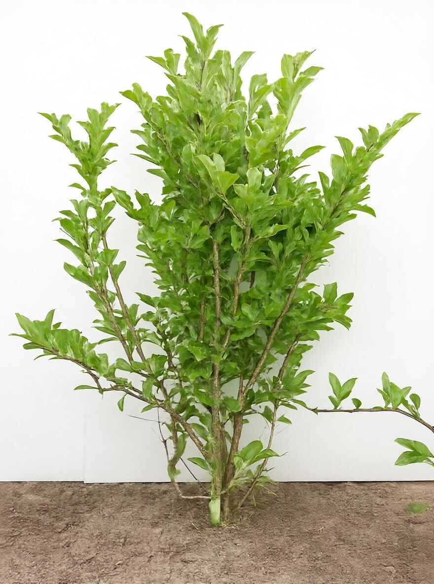 | Wuchs: | Großer Strauch oder kleiner Baum, breit aufrecht, stark verzweigt, im Alter flachrundliche und unregelmäßige Krone, leicht überhängende Äste, 4 bis 5 m hoch und meistens breiter |