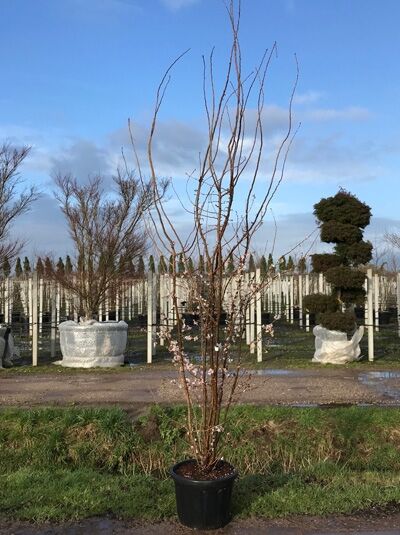 Ihr Stamm ist zunächst hellbraun und wird dann zunehmend dunkel. Er schimmert bei älteren Exemplaren nahezu schwarz und setzt damit aparte Kontraste zu der lieblichen Blüte an den kahlen Winterzweigen.