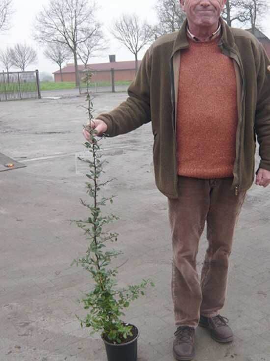 | Detaillierte Beschreibung: | Detaillierte Informationen Feuerdorn 'Orange Glow' / Pyracantha 'Orange Glow'Die Pyracantha 'Orange Glow' ist ein echter Hingucker in jedem Garten! Im Sommer ist der Strauch gänzlich mit Blüten geschmückt, welche die ganze Heckenpflanze in ein weißes Blütenmeer verwandeln – wunderschön anzusehen! Ein weiteres Highlight folgt, wenn ab September der orange bis orangerote Fruchtstand am Hecken-Feuerdorn 'Orange Glow' erscheint. Die Früchte erstrahlen über den ganzen Garten und setzen dekorative farbliche Akzente. Nicht nur das äußere Erscheinungsbild der Pyracantha überzeugt. Der straff aufrechte und kompakte Wuchs eignet sich hervorragend, um dieses Exemplar als Heckenpflanze zu verwenden. Im Alter wächst die Hecke zu einer absolut undurchdringbaren Grundstücksabgrenzung heran. Der Hecken-Feuerdorn ist sehr robust und pflegeleicht. Da er extrem schnittverträglich und sehr standorttolerant ist, ist dieses Exemplar eine gern gesehene Heckenpflanze in den heimischen Gärten. Sind Sie auf der Suche nach einer dichtbuschigen Heckenpflanze, die gleichzeitig einen Farbtupfer zwischen die meist grünen Pflanzen im Garten setzt, ist die Pyracantha 'Orange Glow' die richtige Wahl für Sie. Hier finden Sie alle Sorten der Pyracantha auf einen Blick. Große Auswahl an Pyracantha 'Orange Glow' in verschiedenen GrößenDie Sorte 'Orange Glow' finden Sie in verschiedenen Größen in unserem Shop. So ist es Ihnen möglich, ein geeignetes Exemplar für Ihren Garten auswählen zu können. Jede Größe bietet Vor- und Nachteile, die bei der Auswahl bedacht werden müssen. Wir beraten Sie natürlich gerne, um passende Exemplare abgestimmt auf Ihre Bedürfnisse zu finden. Das kleinste Exemplar des Hecken-Feuerdorns wird in der Größe 60-80 cm geliefert. Die Pflanze wird im Container geliefert. Unsere Containerware hat einen großen Vorteil – sie kann das ganze Jahr über gepflanzt werden, solange der Boden nicht gefroren ist. Das größte Exemplar der Pyrancatha kommt mit der Größe 175-200 cm zu Ihnen nach Hause. Diese Pflanze wird im 12-Liter Container geliefert. Die Verpackungen können zwischen den verschiedenen Größen variieren. Informationen über die unterschiedlichen Wurzelverpackungen finden Sie auf unserem Blog zum Nachlesen. Die größeren Exemplare eignen sich wunderbar dafür, um direkt nach der Pflanzung eine mittelhohe Hecke bewundern zu können. Mit zunehmenden Alter wird die Hecke stets dichtbuschiger werden. Generell erreicht der Feuerdorn eine Wuchshöhe zwischen 3 und 4 m und eine Wuchsbreite zwischen 2 und 3 m. Das jährliche Wachstum der dekorativen Heckenpflanze beträgt bis zu 40 cm..... |