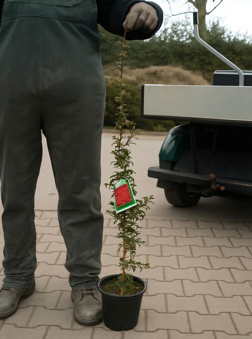 | Detaillierte Beschreibung: | Detaillierte Informationen Feuerdorn 'Soleil d'Or' / Pyracantha 'Soleil d'Or'Neben den anderen Pyracantha-Sorten in unserem Shop, die mit leuchtend orange-roten Früchten geschmückt sind, fällt die Sorte Pyracantha 'Soleil d'Or' vor allem durch die leuchtend gelbe Farbe des Fruchtstandes sofort ins Auge. Egal für welche Färbung der Früchte Sie sich entscheiden – der Fruchtstand der Pyracantha ist immer ein echter Hingucker! Mit der Pyracantha wird der Anblick im Garten nie eintönig, denn bevor der auffallende Fruchtstand an der Pflanze erscheint, ist diese mit zahlreichen weißen Schirmrispen von Kopf bis Fuß bedeckt – wunderschön anzusehen! Gerne wird der Feuerdorn 'Soleil d'Or' als Heckenpflanze verwendet. Der straff aufrechte und kompakte Wuchs ist im Alter undurchdringlich. Zusätzlich wird diese Eigenschaft durch die mit Dornen besetzten Zweige unterstützt. Nicht nur das äußere Erscheinungsbild weiß zu überzeugen, viele weitere positive Merkmale zeichnen den Hecken-Feuerdorn aus. Winterhärte, Schnittverträglichkeit, Robustheit, Anspruchslosigkeit und Standorttoleranz sind nur einige Eigenschaften, die viele Gärtner erfreut. Zudem spricht die Widerstandsfähigkeit gegenüber Krankheiten ebenfalls für dieses Exemplar. Hier finden Sie alle Sorten der Pyracantha auf einen Blick. Große Auswahl an Pyracantha 'Soleil d'Or' in verschiedenen GrößenWir bieten die Sorte 'Soleil d'Or' in verschiedenen Größen in unserem Shop an. So können Sie frei wählen zwischen kleinen Größen, denen Sie beim Wachstum zusehen können oder größeren Exemplaren, die sich nahtlos in bereits länger bestehende Gärten einreihen können. Sollte die passende Größe nicht dabei sein, empfehlen wir einen Blick auf die anderen Sorten der Pyracantha zu werfen: Orange Glow und Red Column. Gerne beraten wir Sie dabei, geeignete Exemplare auszuwählen. Die kleinste Größe des Hecken-Feuerdorn 'Soleil d'Or' ist 60-80 cm groß und wird im 1,5 Liter Container geliefert. Das größte Exemplar ist 175-200 cm groß und wird im 12-Liter Container geliefert. In den meisten Fällen werden die Sorten der Pyracantha im Container geliefert. Unsere Containerware hat einen großen Vorteil: die Pflanzung ist das ganze Jahr über möglich, solange der Boden nicht gefroren ist. Informationen über alle Wurzelverpackungen aus unserem Shop finden Sie auf unserem Blog. Generell erreicht die Pyracantha 'Soleil d'Or'.... |