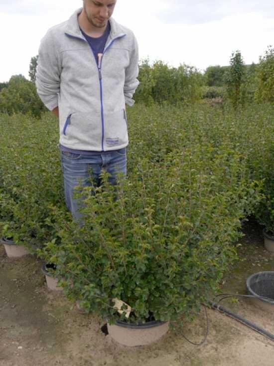 | Wuchs: | Kleinstrauch, dichtbuschig, zierlich, mit steif-aufrechten Trieben, bis zu 120 cm hoch und breit. |