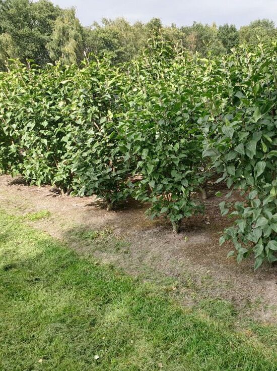 | Wuchs: | Großstrauch, aufrecht wachsend, dicht verzweigt, etwas steiftriebig, 4 bis 6 m hoch und 3 bis 5 m breit |