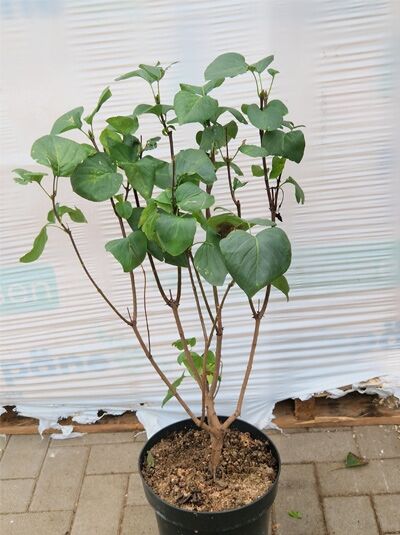 | Blatt: | Sommergrün, herzförmig, lang zugespitzt, glatter Rand, Oberseite sattgrün und schwachglänzend, Unterseite etwas heller, keine Herbstfärbung, bis zu 12 cm lang. |