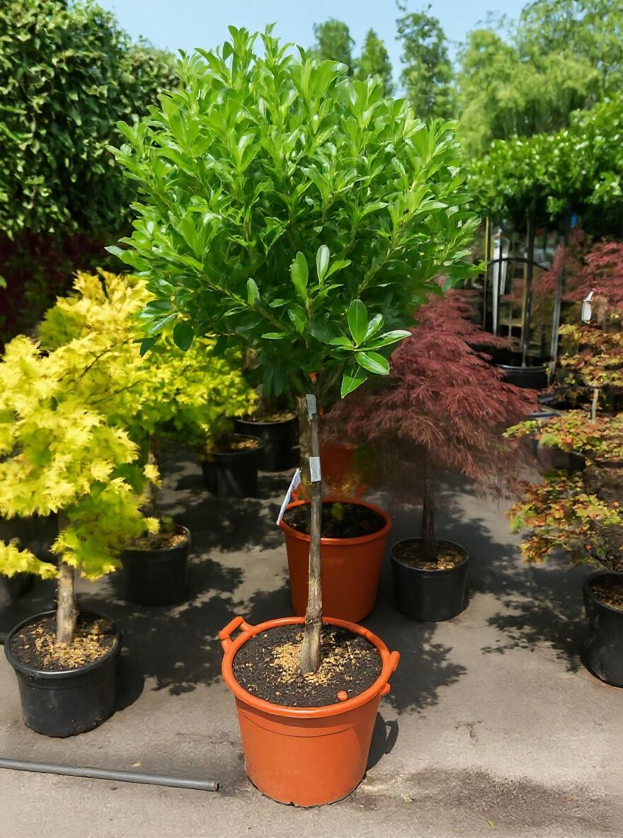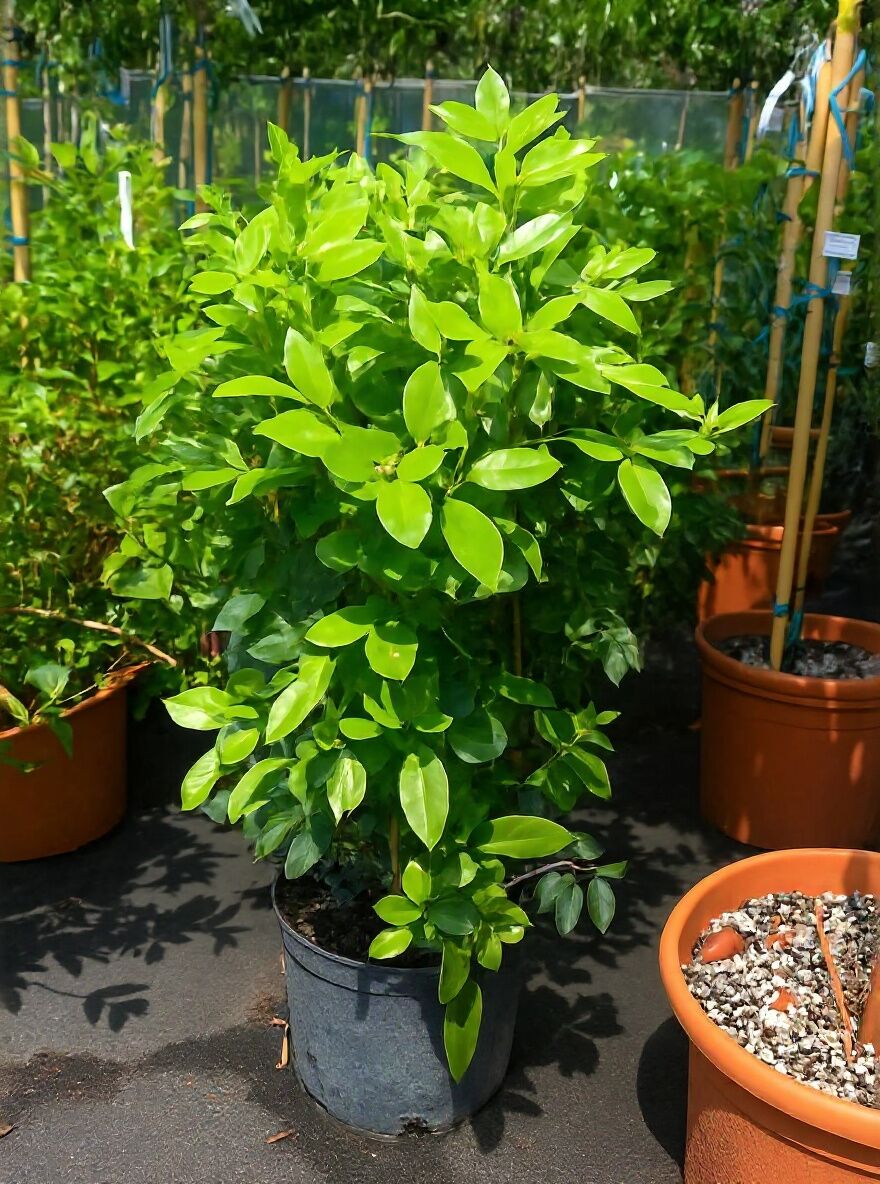 | Blatt: | Immergrün, schmal eiförmig, am Ende zugespitzt, Oberseite dunkelgrün glänzend, Unterseite heller, 5 bis 10 cm lang. |
