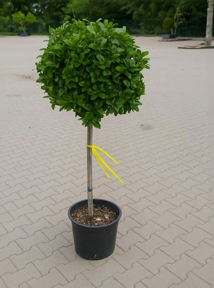 | Blatt: | Immergrün, schmal eiförmig, am Ende zugespitzt, Oberseite dunkelgrün glänzend, Unterseite heller, 5 bis 10 cm lang |