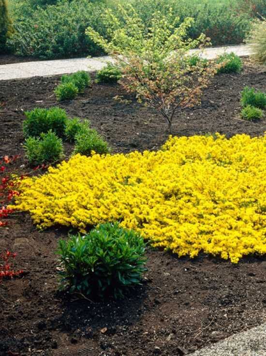 | Wuchs: | Zwergstrauch, buschig, am Boden flach aufliegend, 20 cm hoch und bis zu 80 cm breit. |