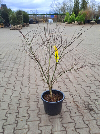 Acer palmatum 'Fireglow' (Roter Fächer-Ahorn), Japanischer Ahorn im Topf, 80-100 cm, C10, mehrtriebig, unbelaubt.