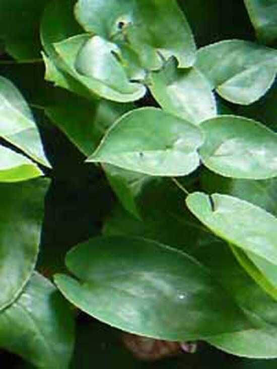 Blatt: | Bräunlich- bis bronze-grün, herzförmig, gesägter Rand. |
