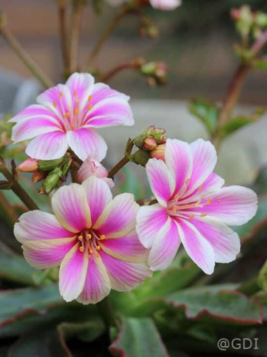 Das Lewisia cotyledon 'Sunset Strain' (Porzellanblümchen) leuchtet zwischen Steinanlagen immer wieder hervor und erstrahlt hier in den verschiedenen Farben. Das 'Sunset Strain' verzaubert den Garten...