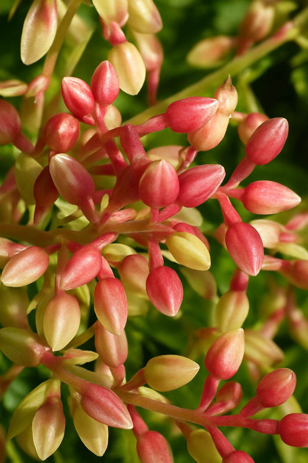 | Blüte: | Glockenartige weiße Blüten in bis zu 15 cm langen überhängenden Rispen, rosarote Winterknospen |