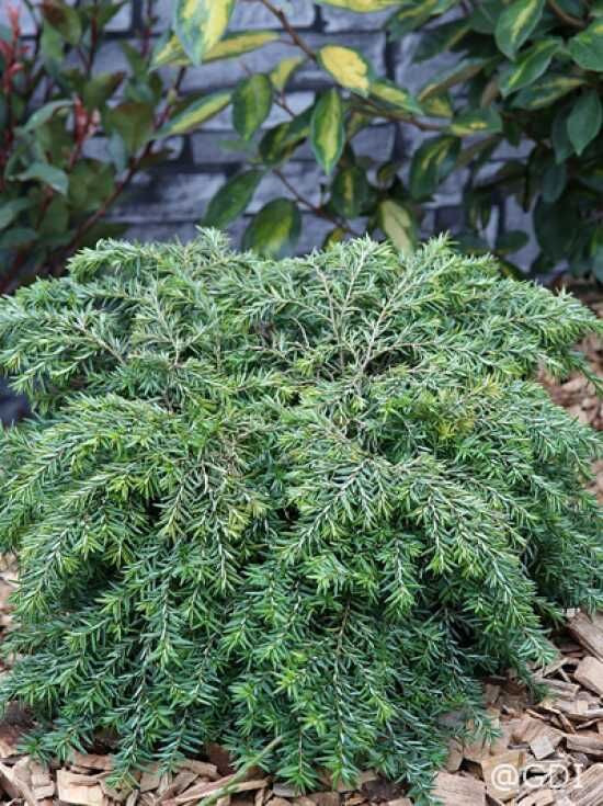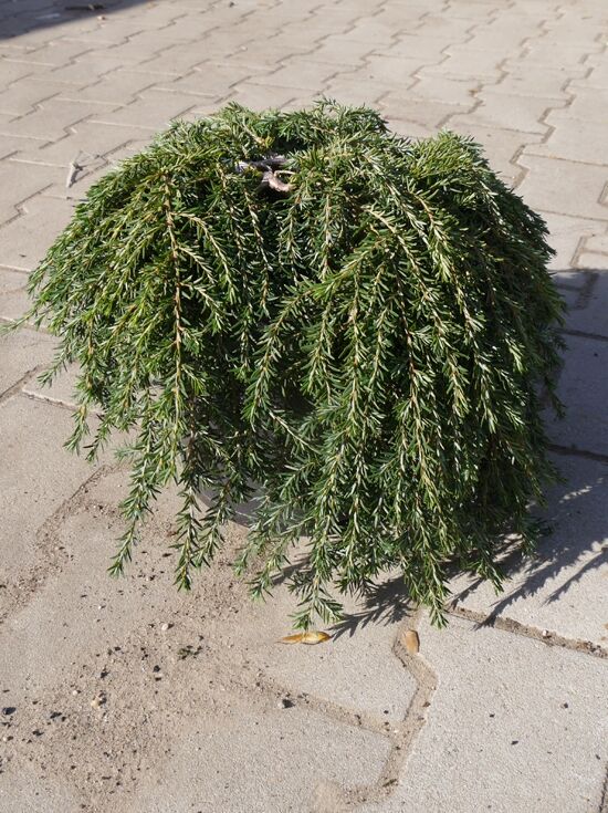 Wuchs: | Zwerggehölz, halbkugelig ausbreitend, Mitte nestartig vertieft, Zweige überhängend, bis zu 1 m hoch und 1,5 m breit, langsamer Wuchs. |
