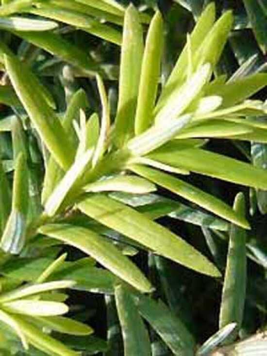 Blatt: | Immergrün, Nadeln, dunkelgrün glänzend, kurz, dichtstehend, linealisch |