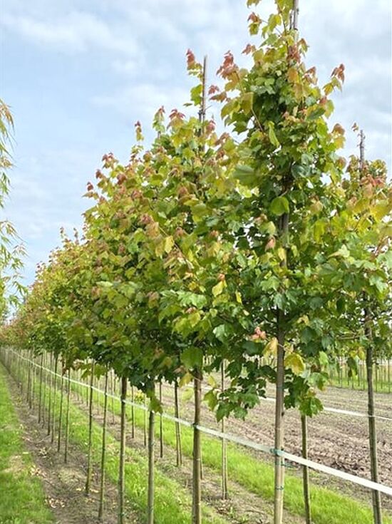 Der Acer rubrum ’October Glory‘ entwickelt sich in einem gemäßigten Tempo zu einem kleinen bis mittelgroßen Baum. Er erreicht noch 4 Jahren eine Höhe von bis zu 3,5 Metern und präsentiert sich schließlich mit einer Endhöhe von bis zu 15 Metern. Seine wunderschöne Baumkrone nimmt bis zu 10 Meter in die Breite ein und sollte daher ausreichend Platz erhalten, um ihre volle Schönheit entfalten zu können.