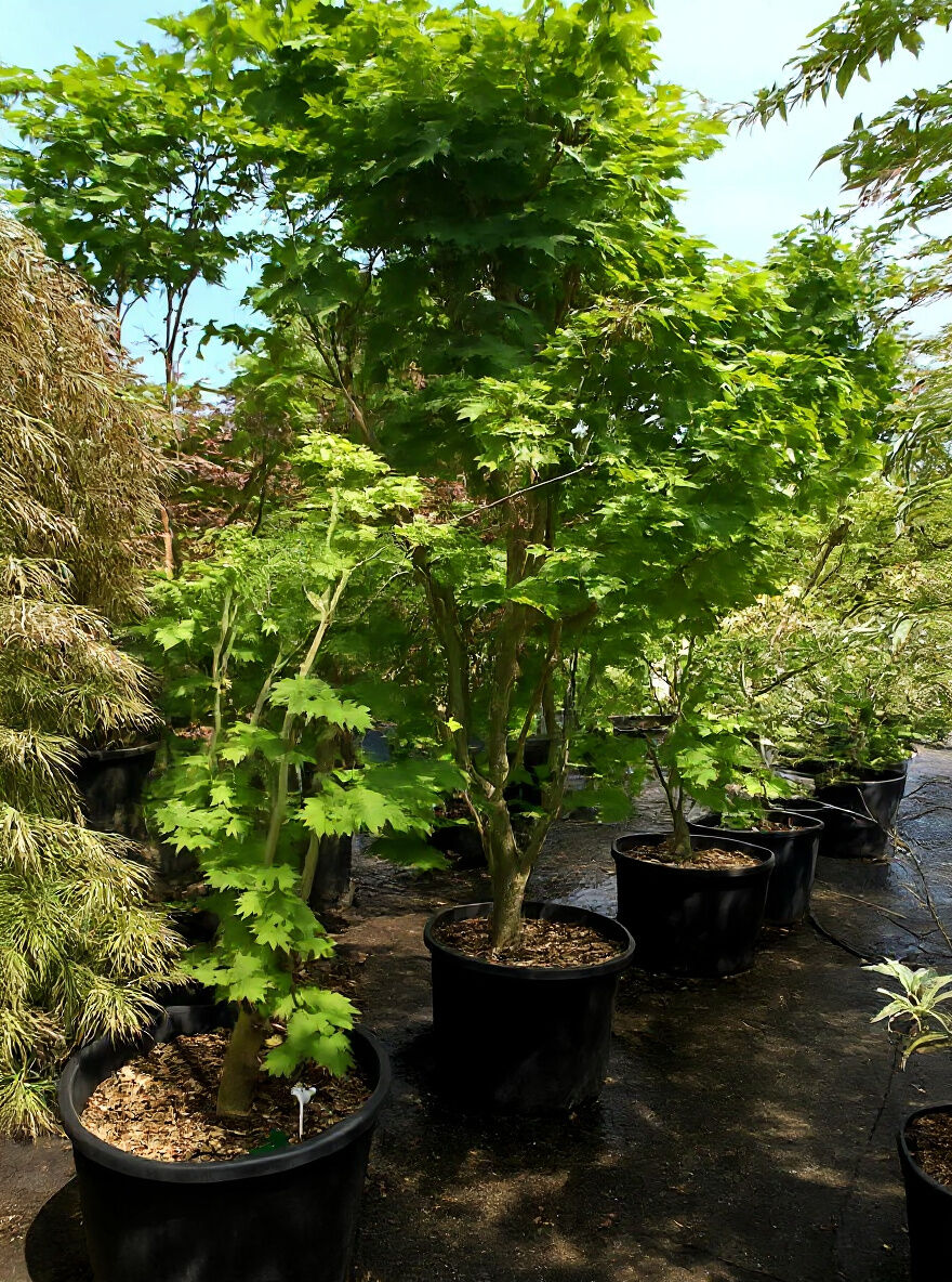 Weinblättriger Japan-Ahorn (Acer japonicum 'Vitifolium') im Container C240, ca. 250–300 cm, mehrstämmig mit grünem Laub.