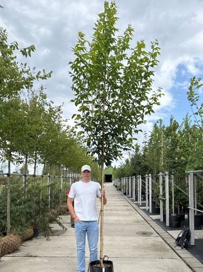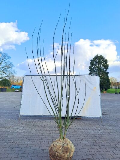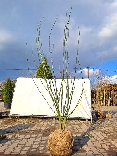 | Detaillierte Beschreibung: | Herkunft und Besonderheiten des Acer negundo / Eschen-AhornDer Acer negundo ist eine Ahornsorte, die in der Mitte und an der Ostküste der Vereinigten Staaten von Amerika beheimatet ist und im Jahre 1680 über den Kolonialhandel ihren Weg nach Deutschland fand. In seiner Heimat findet man ihn gerne an Seen und Flussufern. Acer negundo gehört zur großen Familie der Seifenbaumgewächse (Sapinaceaea) und ist Mitglied der Gattung der Ahorne. Blatt erinnert an Eschen und ist untypisch für den AhornbaumIn Deutschland ist der Acer negundo unter dem Namen Eschen-Ahorn bekannt. Dies verdankt er seinem filigranen Blatt, welches auf den ersten Blick an das Blatt der Eschen erinnert und für den Ahorn eher untypisch erscheint. Robuster Baum, der überall gedeihtDer Eschen-Ahorn erfreut sich aufgrund seines schnellen Wachstums und der generellen Robustheit einer großen Beliebtheit und ist daher in vielen Gärten Europas anzutreffen. Er wächst an nahezu jedem Standort und verträgt sowohl Staunässe als auch Trockenheit problemlos. Schnelles Wachstum mit bis zu 100cm pro JahrGerade in jungen Jahren entwickelt sich der Acer negundo in einem rasanten Tempo von bis zu 100 cm pro Jahr. Dieses Tempo verringert sich im Laufe der Zeit, sodass der Eschen-Ahorn später ein Jahreswachstum bis circa 50 cm vorweisen kann. Er schenkt somit schon kurz nach seiner Pflanzung ein herrliches Stück Naturerlebnis und bietet im Sommer die Möglichkeit eines Schattenplatztes oder auch eines Sichtschutzes. Malerische, breite Kronenform bietet wunderschönen AnblickDer Acer negundo präsentiert sich als mittlerer bis großer Baum mit einer Endhöhe von bis zu 15 Metern. Gerade in die Breite benötigt er ausreichend Raum, um sich bestmöglich entfalten zu können. Seine breite, sparrige Krone benötigt nicht selten bis zu 10 Meter Platz und erzeugt durch malerisch überhängende Äste eine anmutige Impression, sodass dieser Baum zu einem echten Highlight wird und bewundernde Blicke auf sich zieht. Glänzend grüne Baumrinde mit bereifter StrukturAuch der Stamm des Eschen-Ahorns unterscheidet sich von anderen Sorten des Ahorns. Er glänzt frischgrün und trägt eine hellgrau bereifte Struktur, die dem Baum eine aparte Optik verleiht und das Gesamtbild des Acer negundo besonders macht. Gefiedertes Blatt macht diese Ahornsorte besondersDas wohl auffälligste Unterscheidungsmerkmal zu anderen Ahornsorten stellt das Blattwerk des Acer negundo dar. Das Blatt ist gefiedert dreilappig. Die drei einzelnen Blättchen.... |