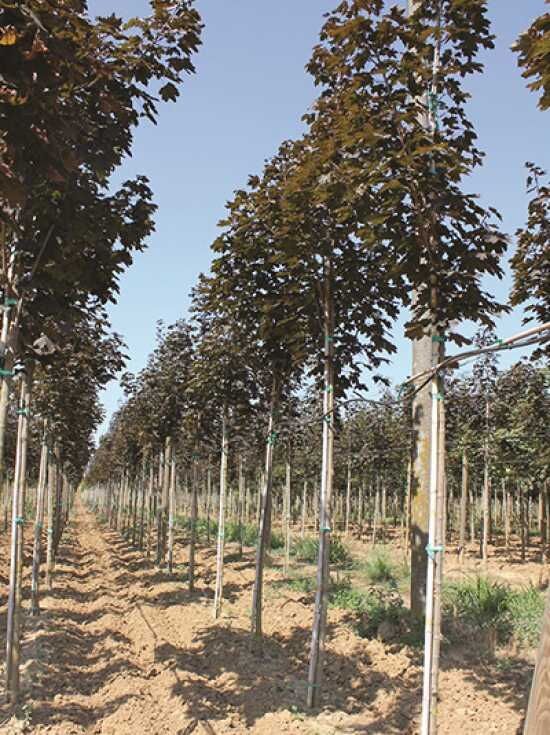 Der Acer platanoides ’Crimson King‘ wird durch ein starkes und oberflächennahes Wurzelsystem versorgt. Viele Feinwurzeln bilden sich aus und liefern Wasser und Nährstoffe. Er verträgt problemlos Teilbepflasterung und ist daher gut geeignet für die Nutzung als Straßen- und Alleebaum.