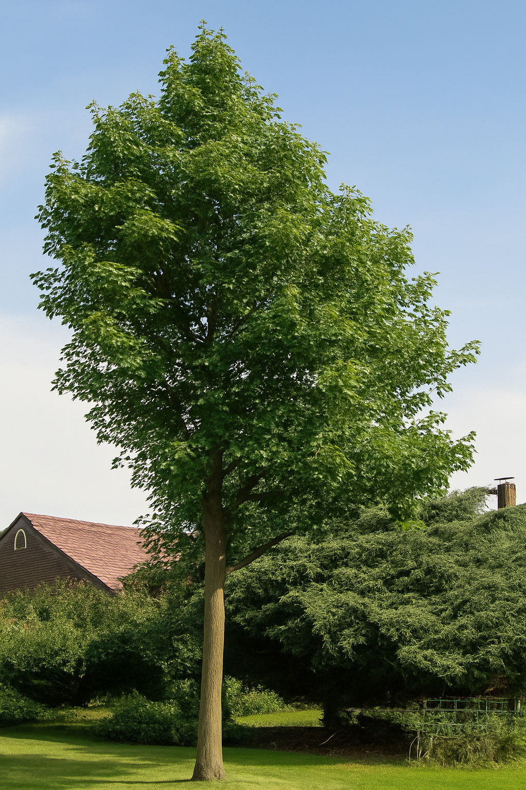 Robuster Baum mit attraktiven Blättern und gesundem Wachstum, bringt viel Struktur in den Garten.