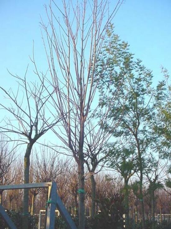 Neben seinem aufrechten, geraden Wuchs überzeugt der Stamm der Selektion mit seiner auffallend grauen Borke. Diese betont die elegante Erscheinung und zieht viele Blicke auf sich. Im Gesamtbild mit dem wunderschönen Blattwerk entstehen wunderbare Kontraste, die den Garten zu jeder Jahreszeit schmücken.