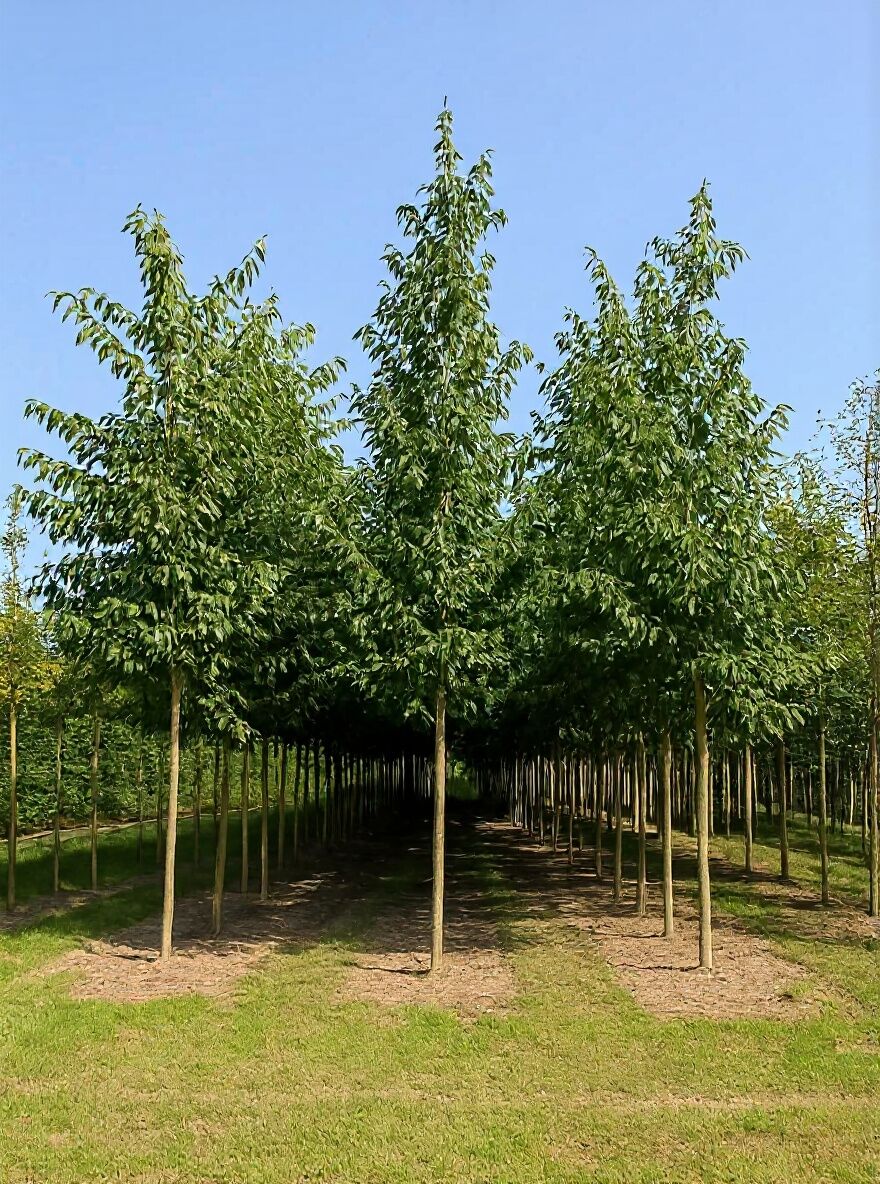 Wuchs: Mittelgroßer Baum, aufrechte, kegelförmige Krone, 12 bis 15 m hoch und bis zu 8 m breit.