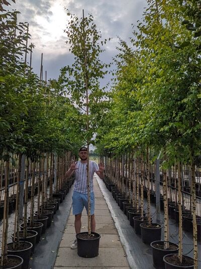 Die Gold-Birke Betula ermanii hat eine tolle Rindenfarbe und wächst kräftig – ein richtiger Charakterbaum.