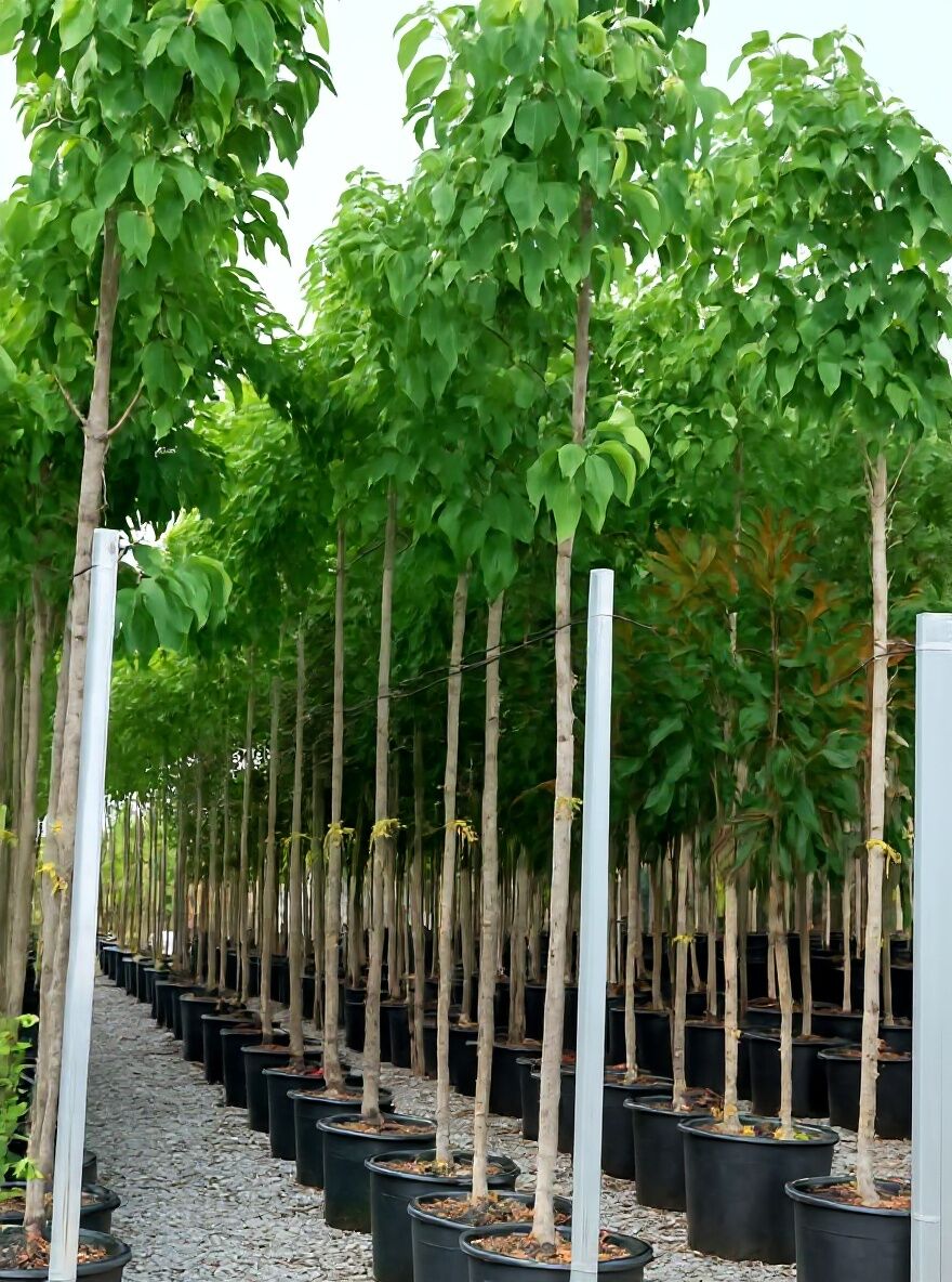 Der Stamm des Chinesischen Losbaums trägt eine recht helle Rinde, die in einem schönen Hellgrau strahlt. Er wirkt recht dezent und bietet einen grandiosen Anblick in Kombination mit dem frischen Blatt der Selektion.