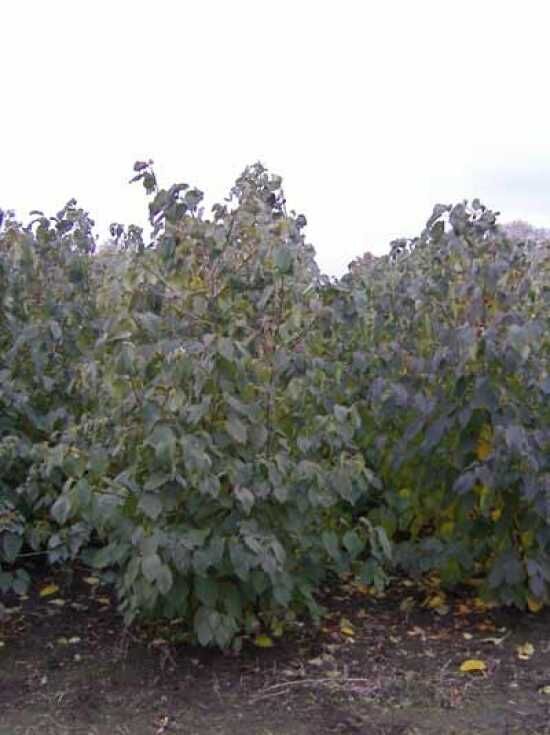Davidia involucrata Taschentuchbaum, Solitär 200–250 cm mit Db., mehrstämmiger Baum mit dichtem, grünem Laub im Feldbestand.
