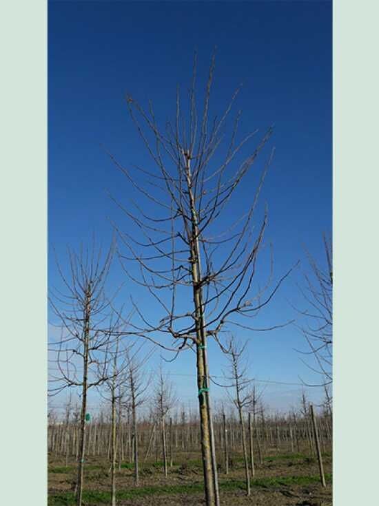| Wuchs: | Mittelgroßer Baum, pyramidenförmige Krone, geschlossen und kompakt, obere Äste aufsteigend, Seitenäste horizontal abstehend, im Alter leicht durchhängend, 15 bis 20 m hoch und ca. 8 m breit |