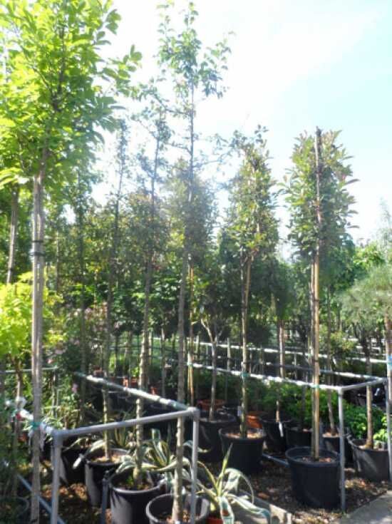 | Wuchs: | Großer Strauch oder kleiner Baum, anfangs straff aufrecht und trichterförmig, im Alter breit und ausladend mit überhängenden Seitenästen, 4 bis 6 m hoch und 4 bis 5 m breit. |