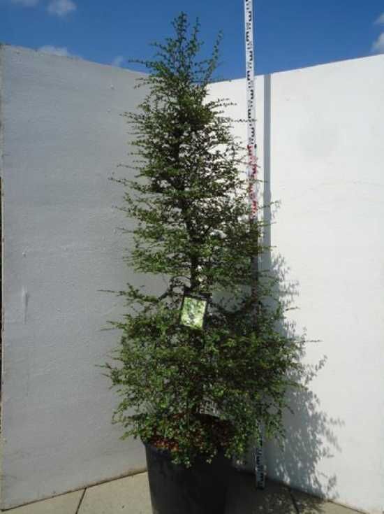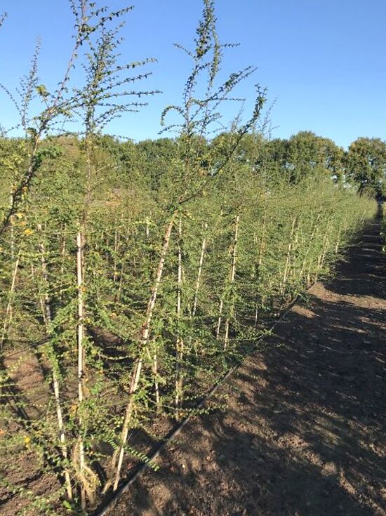 Wuchs: | Großer Strauch oder kleiner Baum, gebogene Zweige, eigenwilliger Wuchs, manchmal straff aufrecht wachsend, 6 bis 10 m hoch und ähnlich breit |