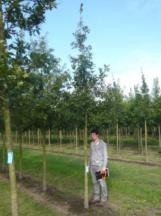 Quercus cerris (Zerr-Eiche, Türkische Eiche) Hochstamm 14-16 StU mit Drahtballen, Baum mit Stamm und Krone im Feld
