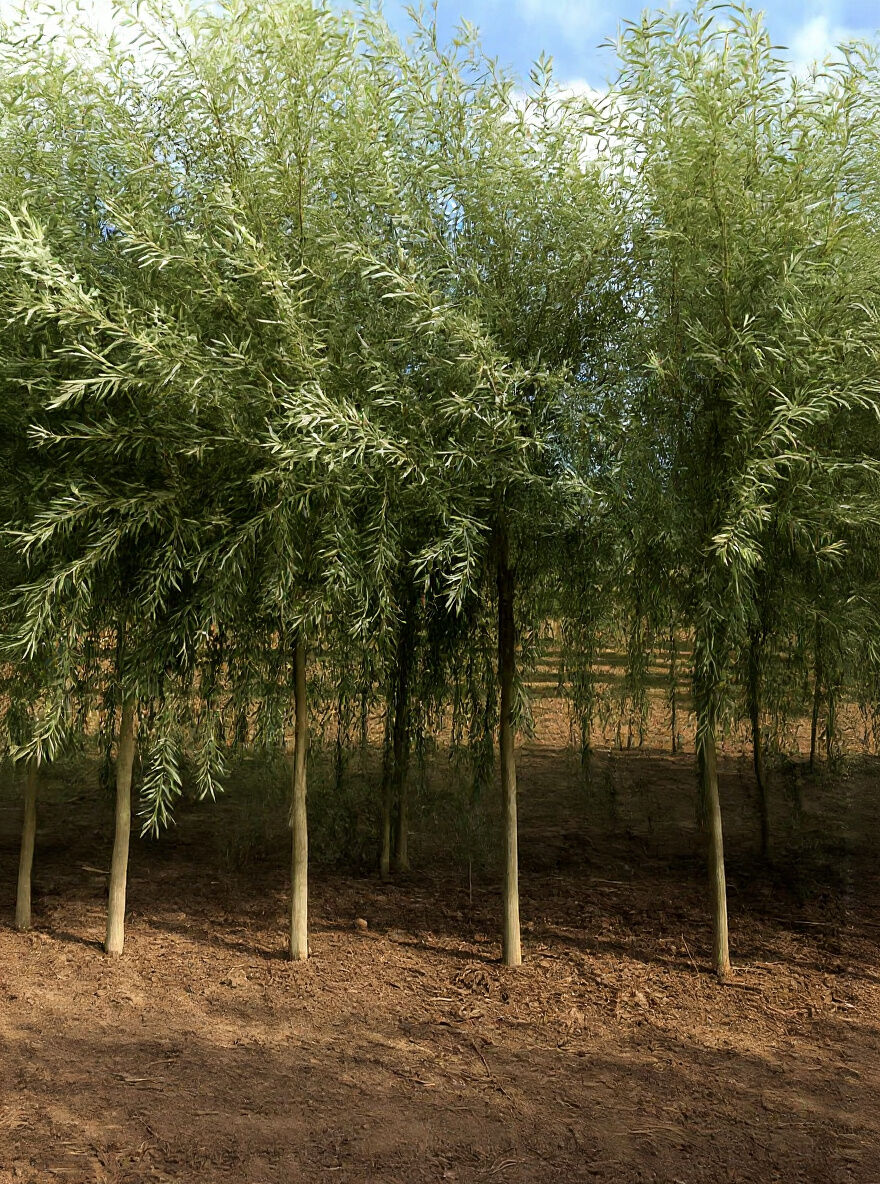 Salix alba 'Sericea' / Seiden-Silber-Weide, Hochstamm mit schlanken Stämmen und silbrig-grünen, schmalen Blättern
