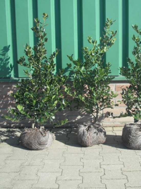 Wählen Sie zwischen verschiedenen Größen der Stechpalme in unserem Shop, um einen Garten ganz nach Ihren individuellen Vorstellungen zu gestalten. Wir helfen Ihnen gerne dabei, ein geeignetes Exemplar auszuwählen. Die kleinste Stechpalme 'J. C. van Tol' ist 80-100 cm groß und wird mit Ballierung geliefert. Das größte Exemplar ist 250-300 cm groß und wird als Solitär mit Drahtballierung geliefert. Zwischen den verschiedenen Größen der Pflanzen variieren die Wurzelverpackungen. Informationen darüber finden Sie auf unserem Blog. Generell erreicht der Ilex eine Wuchshöhe zwischen 6 bis 8 m. Damit gehört er zu den größten Ilex-Sorten in unserem Shop. Die Wuchsbreite beträgt zwischen 3 bis 4 m. Das jährliche Wachstum der Heckenpflanze beträgt bis zu 20 cm. Die Stechpalme gehört mit diesem mäßigen Zuwachs zu den langsam wachsenden Heckenpflanzen in unserem Shop.