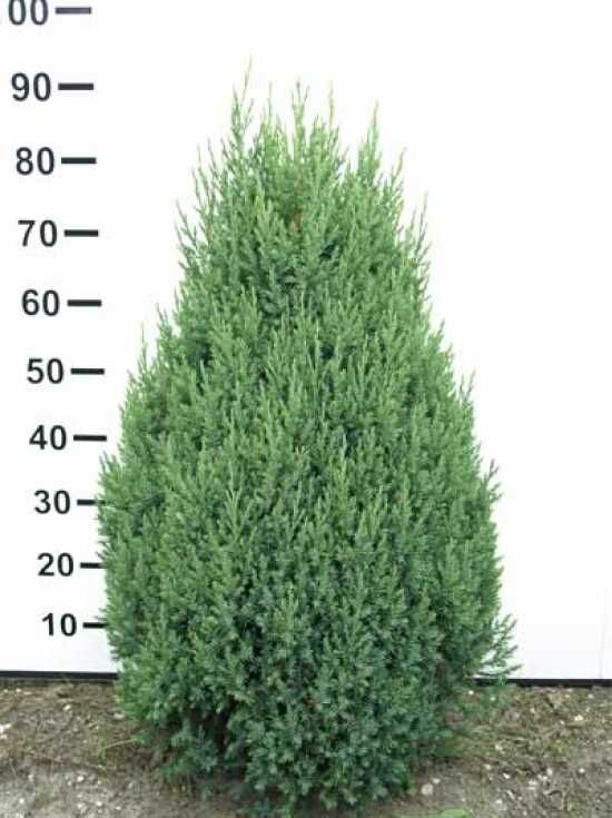 | Wuchs: | Strauch mit kegelförmigem, dicht verzweigtem Wuchs; bis zu 3,5 m hoch und 2 m breit, Jahreszuwachs bis zu 20 cm in die Höhe und 15 cm in die Breite. |