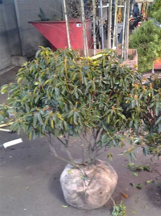 | Blatt: | Immergrün, lorbeerblattähnlich, elliptisch, mit langgezogener Spitze, ledrig, Oberseite dunkelgrün glänzend, Unterseite gelbgrün, 6 bis 10 cm lang |