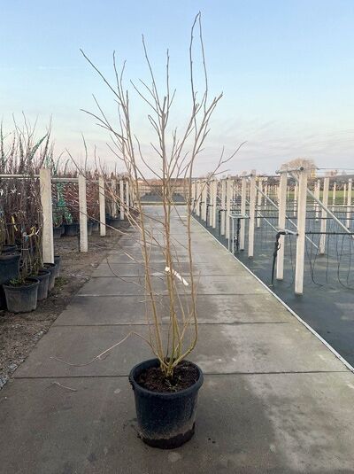 Wuchs: | Großstrauch, breit aufrecht und ausladend, später trichterförmig, 4 bis 6 m hoch und ebenso breit |